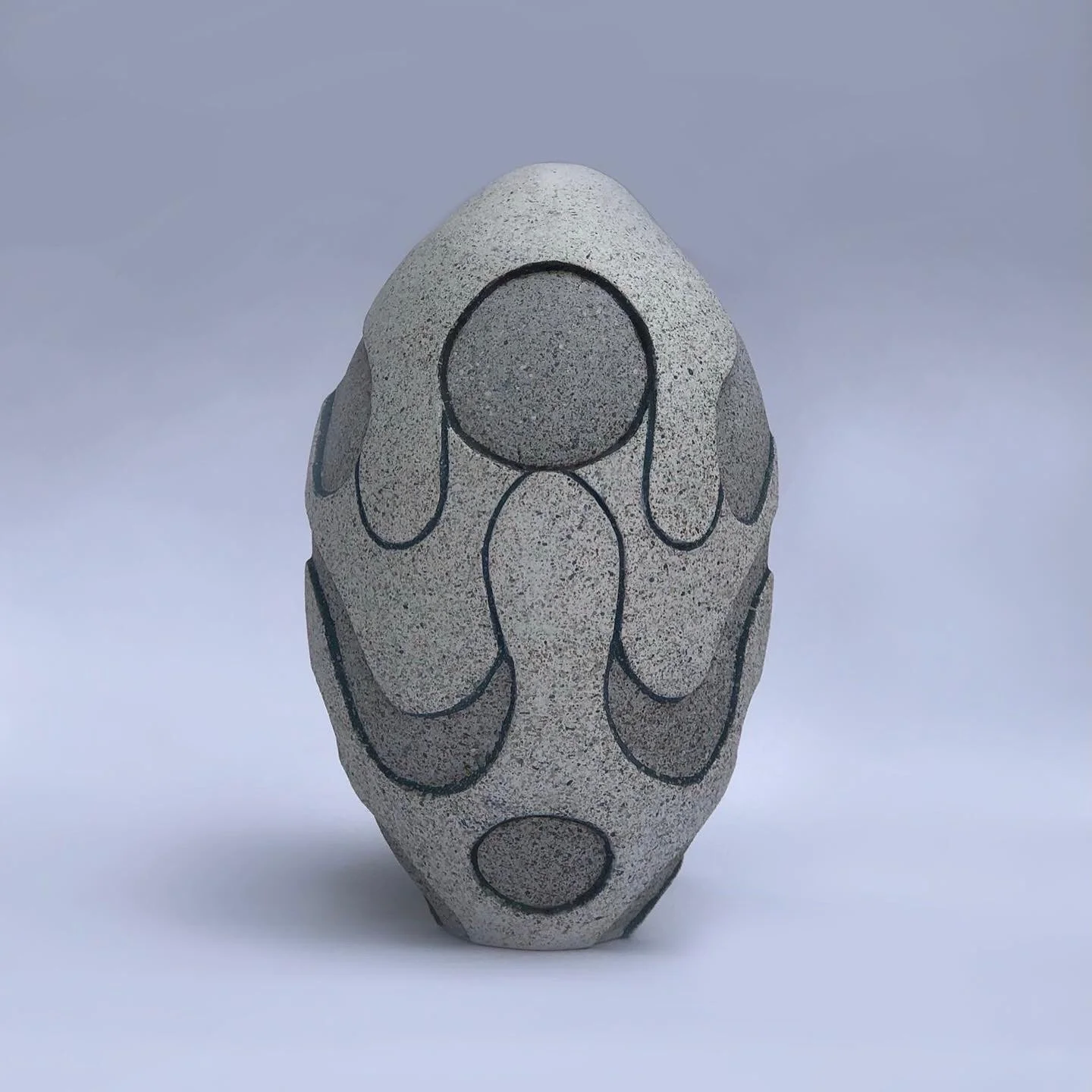 "Ecos del Pensamiento" ("Echoes of Thought"). Ceramic, underglaze, oxide, stains and glaze. (2024). 4 1/4" x 4 1/2" x 3 5/16". Private Collection.
