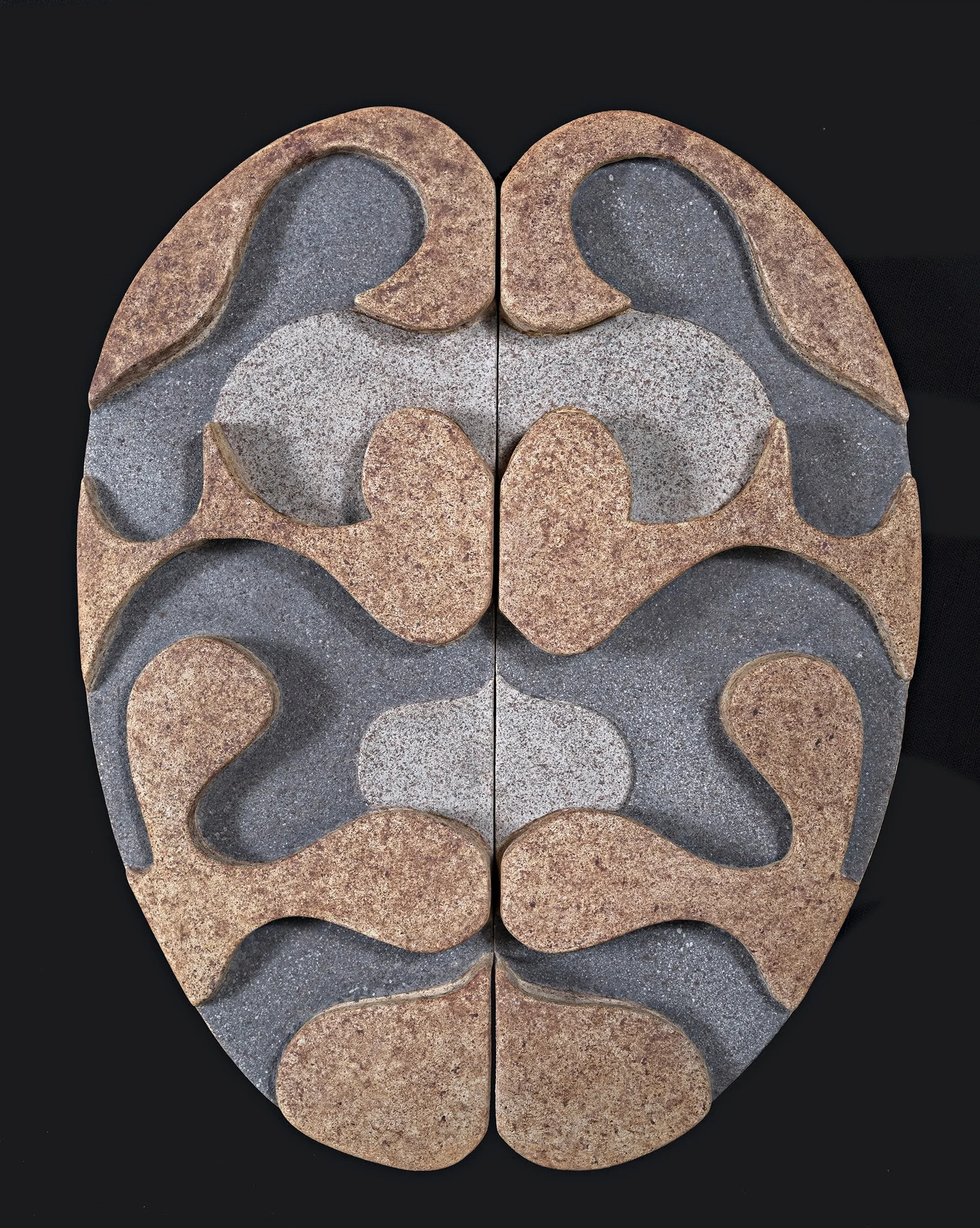 "Programmed Dichotomy I" Ceramic, slip, oxides and glaze. (2021) 5 1/2" x 5" x 2 1/16" - Divided